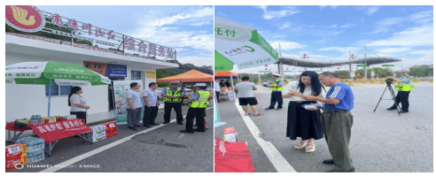 10月5日下午,在宜春某收费站,张女士一家三口因车辆突发故障被迫滞留。宜春市中心支公司志愿者发现后主动上前询问,见天气炎热,第一时间将张女士及其家人引导至服务站阴凉处休息,并送上矿泉水和面包等物资,同时协助联系附近维修点,协调处理事宜。张女士连声道谢:“中国人寿财险的服务真到位,太感谢你们了!”